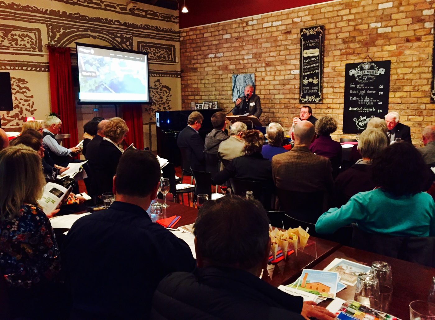 Guest speaker Andrew Caisley, Board member of Creative New Zealand, gave the audience an overview of CNZ’s history, activities and some of the challenges that come with Government funding for the arts.