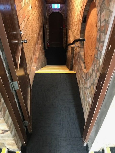 Below you can see some photos of work in progress and how the Coal Bunker looks now – complete with new safety edging on the stairs that glows in the dark!
