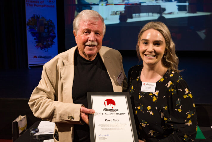 PumpHouse Board Chair Peter Burn was surprised with an award of Life Membership of Friends of The PumpHouse at the theatre’s AGM on Wednesday night.